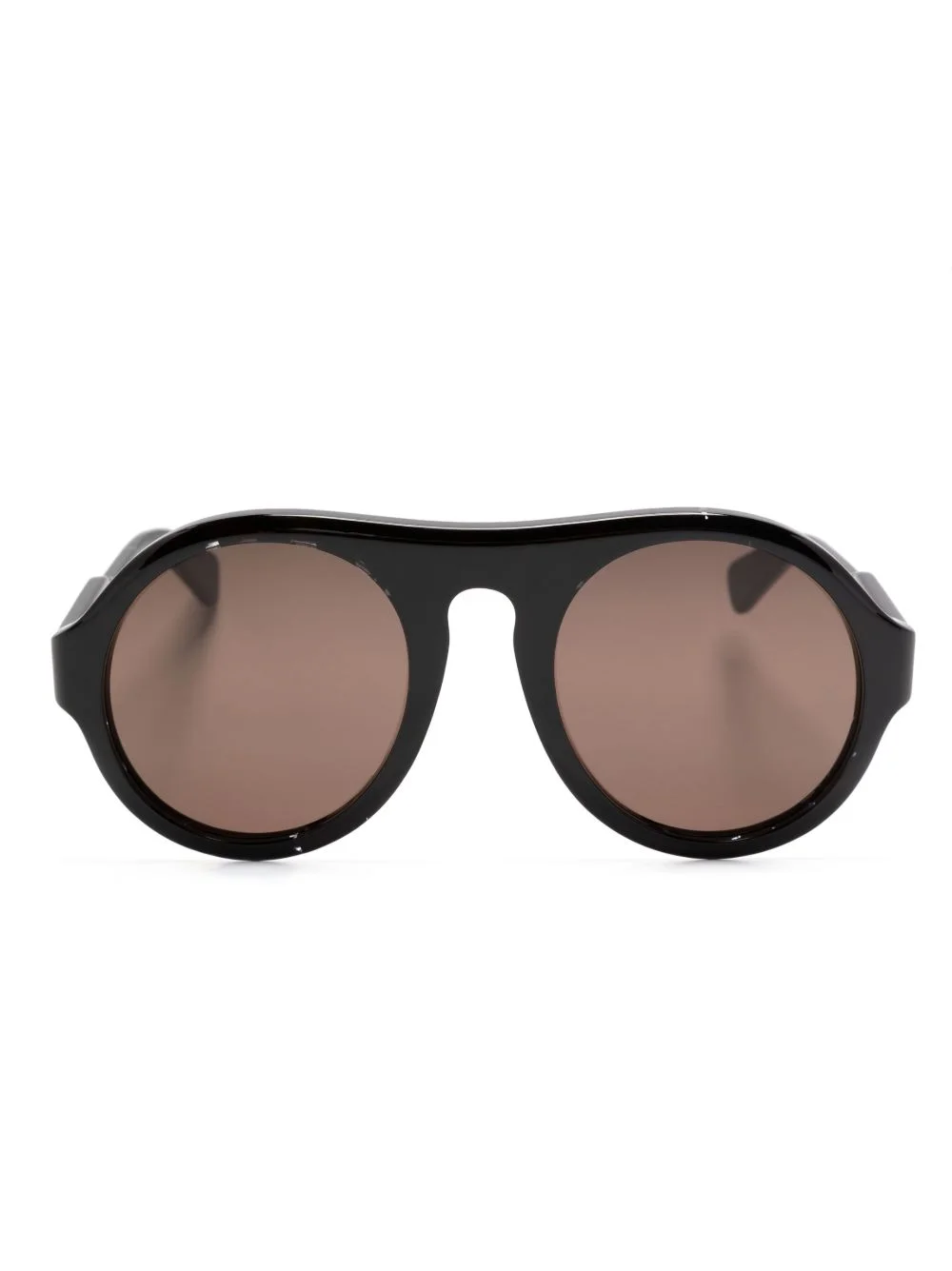 logo-engraved pilot-frame sunglasses Highlights - Black - Acetate - Round frame - Brown tinted lenses - Straight arms - Curved tips - These glasses come with a protective case. Made in Italy Composition Acetate 100% SIZE & FIT Measurement Arm Length 5.7 in(14.5 cm) Bridge Width 0.9 in(2.3 cm) Lens Diameter 2.12 in(5.4 cm) Total Width 5.7 in(14.5 cm)