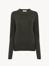 Crew-neck sweater in a merino wool knit, detailed with ribbed trims and a subtle Chloe logo patch at the chest. PRODUCT DETAILS Crew-neck sweater outer shell: 100% Wool Ribbing: 97% Wool, 2% Polyamide, 1% Elastane Fit: straight - The model is 5'10" (178 cm) and wears a prototype in size S - Merino wool sweater - Slips on Color: Bronze Green Item code: CH25AMP095303C3