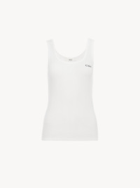 Tank top in ribbed jersey featuring a contrast embroidered Chloe logo at the left chest. PRODUCT DETAILS Tank top outer shell: 100% Cotton Fit: fitted - The model is 5'10" (178 cm) and wears a prototype in size 36 - White logo tank top - Slips on Care: gentle wash 90°F (30°C) Color: White Item code: CH25SJH12180101