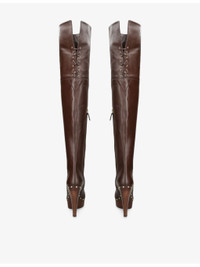 PRODUCT DETAILS - Chloe leather boots - 100% leather - Zip fastening - Over-the-knee platform boots, studded clog-inspired wooden structure, tapered heel, pointed toe, high tube leg, criss-cross leather laces, geometric stitching, debossed Chloe logo on the back. - Heel height heel height 5.1in - Heel-to-toe drop: 3.5in - Specialist leather clean - Upper: 100% leather - Lining: 100% leather - Sole: 100% wood Ref: R04558641