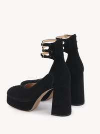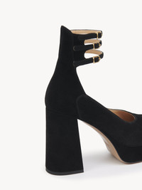 These Loti platform pumps are crafted from suede goatskin. Set on a block heel, they feature a subtle square toe and triple ankle straps finished with gold-tone Chloe-engraved buckles. PRODUCT DETAILS Platform pump heel height: 3.9" (10 cm) Heel-to-toe drop: 3" (7.5 cm) Upper: goatskin Inner sole: lambskin Main lining: lambskin Sole: cowhide Heel: goatskin Fit true to size, European sizing - Buckle fastening To make this product, Chloe worked with Leather Working Group (LWG) certified leather manufacturers. LWG certifies tanneries based on their water and energy usage, management of chemicals, solid waste, and wastewater. Color: Black Item code: CH25W13FRA001