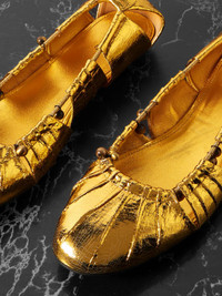 EDITORS'NOTES Chic and bohemian, Chloe’s ‘Luna’ ballet flats are based on a style from the French label’s archive. They’re made from gathered shimmering gold-tone leather in cutout panes that are threaded together with bead-embellished cords. SIZE & FIT - Fits true to size, take your normal size - Italian sizing DETAILS & CARE - Slight heel - Gold leather (Lamb) - Slip on