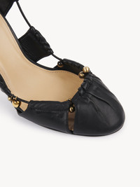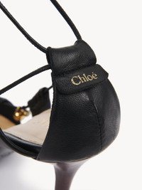 Crafted from shiny sheepskin, the Luna pumps are inspired by a Chloe archive. The pleated cutout silhouette creates a deconstructed effect, elevated with antique gold bells. Knotted straps wrap around the ankles while the Chloe logo finishes the back of the shoe. PRODUCT DETAILS Pump heel height: 3.5" (9 cm) Heel-to-toe drop: 3.5" (9 cm) Upper: sheepskin Inner sole: sheepskin Main lining: sheepskin Secondary lining: suede goatskin Sole: cowhide Heel: cowhide Fit true to size, European sizing - Lace-up To make this product, Chloe worked with Leather Working Group (LWG) certified leather manufacturers. LWG certifies tanneries based on their water and energy usage, management of chemicals, solid waste, and wastewater. Color: Black Item code: CHC25S08KQL001