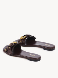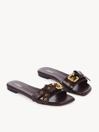 The Mae slides are crafted from shiny calfskin with a distinctive soft insole. The wide upper is embellished with knotted straps debossed with the Chloe logo, gold-tone eyelets and the Maison's Paddington buckle. PRODUCT DETAILS Slide heel height: 0.4" (1 cm) Heel-to-toe drop: 0.2" (0.5 cm) Upper: calfskin Inner sole: calfskin Main lining: calfskin Sole: cowhide Fit true to size, European sizing - Slip-on To make this product, Chloe worked with Leather Working Group (LWG) certified leather manufacturers. LWG certifies tanneries based on their water and energy usage, management of chemicals, solid waste, and wastewater. Color: Stormy Red Item code: CHC25S08NQJ610
