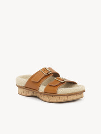 Treading the line between sporty and chic, the Mara flat mule is an easy-wearing slide exuding natural authenticity. Crafted from vegetable-tanned calfskin in bold, oversized proportions, the slip-on mule combines curvy lines with adjustable buckled straps. The addition of shearling and cork adds rich textural depth to the comfortable silhouette. PRODUCT DETAILS Flat mule - Inner sole: lambskin - Upper: calfskin - Sole: 50% cork oak wood, 50% rubber - Main lining: coated calfskin Fit true to size, European sizing - Slip-on mule with adjustable buckle straps By purchasing this product, you are supporting sustainable leather manufacturing through the Leather Working Group. Color: Tan Item code: CHC22A679AK25M
