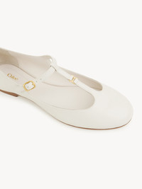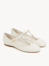 Crafted from nappa goatskin, this revisited Marcie ballerina pairs a Mary Jane silhouette with an almond toe shape for a Parisian attitude. The upper is detailed with Marcie's gold-tone buckle in miniature while the Chloé-engraved buckle lends a signature finish to these comfortable ballet flats. PRODUCT DETAILS Flat ballerina Upper: nappa goatskin Inner sole: sheepskin Main lining: sheepskin Sole: cowhide Fit true to size, European sizing - Buckle fastening To make this product, Chloé worked with Leather Working Group (LWG) certified leather manufacturers. LWG certifies tanneries based on their water and energy usage, management of chemicals, solid waste, and wastewater. Color: Eggshell Item code: CHC24A02NNP122