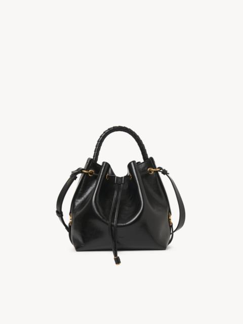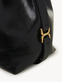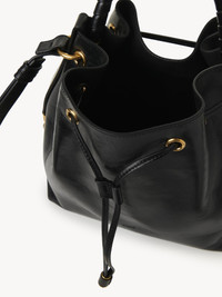 Crafted from shiny calfskin, this Marcie bucket bag has a slouchy silhouette with a hand-wrapped handle and tassel closure. Leather belts at the sides are embellished with signature gold-tone metallic pieces. This leather bag features a handle and strap for hand, shoulder or cross-body carry. PRODUCT DETAILS Bucket bag in shiny calfskin Main material: Calfskin Main lining: Split calfskin Carry: Hand, shoulder & cross-body - 1 roomy main compartment - Drawstring closure - Adjustable strap Comes with a dust bag - Width: 10.2" (26 cm) - Height: 9.4" (24 cm) - Depth: 5.9" (15 cm) - Handle drop: 3.7" (9.5 cm) - Min. strap drop: 15" (38 cm) - Max. strap drop: 19.7" (50 cm) This handbag is made from semi-aniline leather. The half-transparent finish imparts a robust nature to the product while preserving its natural character. Follow all care instructions on the insert. To make this product, Chloé worked with Leather Working Group (LWG) certified leather manufacturers. LWG certifies tanneries based on their water and energy usage, management of chemicals, solid waste, and wastewater. Color: Black Item code: CHC24AS606N57001