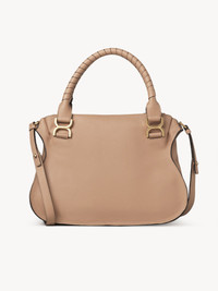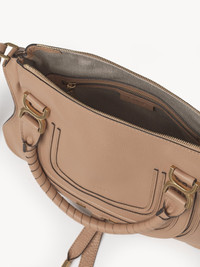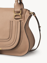 This iconic Marcie double carry bag is a roomy and practical day bag crafted from grained calfskin. Clean lines and a contoured design enhance the slouchy silhouette, while hand-wrapped leather handles add crafty detail. The detachable strap allows for casual, cross-body styling. All about Marcie... The Maison’s Marcie bag line blends a feminine aesthetic with a 70s folk spirit. Decorative saddle stitches create equestrian appeal, while the glint of brass hardware and the dangling tassel add a feminine touch. PRODUCT DETAILS Double carry bag in grained calfskin Carry: hand & long shoulder or cross-body - 1 Roomy compartment - 1 Front slip pocket hidden by the flap - 1 Internal zippered pocket - Removable leather strap - Antique gold finishing - Linen lining Comes with a dust bag - Width: 14.2" (36 cm) - Height: 11.0" (28 cm) - Depth: 4.7" (12 cm) - Min. strap drop: 18.1" (46 cm) - Max. strap drop: 21.6" (55 cm) This double carry bag is made from semi-aniline leather. Tanning imparts a specific character to the skin, such as hues and wrinkles, combined with a light and transparent aniline finish. Respect the care instructions on the leaflet. To make this product, Chloé worked with Leather Working Group (LWG) certified leather manufacturers. LWG certifies tanneries based on their water and energy usage, management of chemicals, solid waste, and wastewater. Color: Light Tan Item code: CHC22AS660I3126X