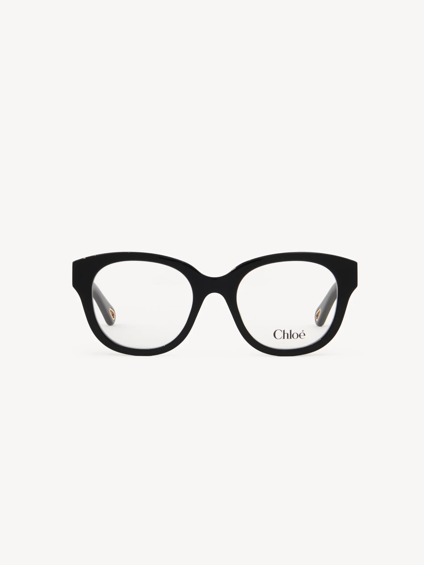DESCRIPTION Crafted from lower-impact acetate, these Marcie round eyeglasses feature a chunky black frame elevated with Marcie's signature gold metal piece at the temples. Drop-shaped openings at the temple tips make these eyeglasses compatible with Chloe's eyewear jewelry. PRODUCT DETAILS Round eyeglasses in lower-impact acetate - Prescription friendly - Chloe logo engraved on the gold metal pieces at the temples These Chloe eyeglasses come with a case and lens cloth - Lens: 2" (51 cm) - Bridge: 0.8" (20 mm) - Temple: 5.5" (140 mm) These eyeglasses come with transparent sample lenses bearing the Chloe logo to help the frames hold their shape. Please note that they are not intended for use. Visit an opticians or specialized store for a prescription lens fitting instead. - Black lower-impact acetate frame - Transparent lenses Item code: CH25AEK0304001 CARE INSTRUCTIONS These sunglasses/eyeglasses are made with carefully selected materials. Please handle with care for a longer product life.- Store in the case provided.- Clean with a soft, dry cloth.- If necessary, use a damp cloth and mild detergent. Do not use solvents or aggressive detergents which may alter the features of the sunglasses/eyewear