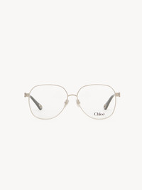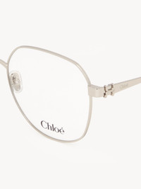 DESCRIPTION These Marcie round eyeglasses have a lightweight silver metal frame elevated with Marcie's signature silver metal piece at the temples. The Chloe logo details the temples, while drop-shaped openings at the temple tips make these eyeglasses compatible with Chloe's eyewear jewelry. PRODUCT DETAILS Round eyeglasses in silver metal - Adjustable nosepads - Prescription friendly - Chloe logo engraved on both temples These Chloe eyeglasses come with a case and lens cloth - Lens: 2.3" (58 cm) - Bridge: 0.6" (14 mm) - Temple: 5.5" (140 mm) These eyeglasses come with transparent sample lenses bearing the Chloe logo to help the frames hold their shape. Please note that they are not intended for use. Visit an opticians or specialized store for a prescription lens fitting instead. - Silver metal frame - Transparent lenses Item code: CH25AEK0307035 CARE INSTRUCTIONS These sunglasses/eyeglasses are made with carefully selected materials. Please handle with care for a longer product life.- Store in the case provided.- Clean with a soft, dry cloth.- If necessary, use a damp cloth and mild detergent. Do not use solvents or aggressive detergents which may alter the features of the sunglasses/eyewear