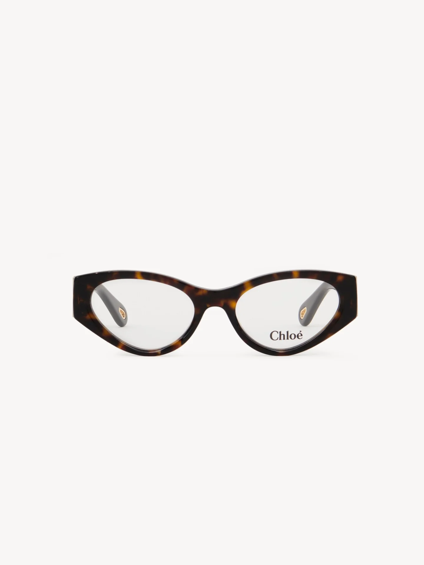 DESCRIPTION Crafted from lower-impact acetate, these Marcie cat-eye eyeglasses feature a chunky Dark Havana beveled frame elevated with Marcie's signature gold metal piece at the hinges. The Chloe logo details the temples, while drop-shaped openings at the temple tips make these eyeglasses compatible with Chloe's eyewear jewelry. PRODUCT DETAILS Cat-eye eyeglasses in lower-impact acetate - Prescription friendly - Chloe logo engraved on both temples These Chloe eyeglasses come with a case and lens cloth - Lens: 2.1" (53 cm) - Bridge: 0.7" (19 mm) - Temple: 5.3" (135 mm) These eyeglasses come with transparent sample lenses bearing the Chloe logo to help the frames hold their shape. Please note that they are not intended for use. Visit an opticians or specialized store for a prescription lens fitting instead. - Dark Havana lower-impact acetate frame - Transparent lenses Item code: CH25AEK0273218 CARE INSTRUCTIONS These sunglasses/eyeglasses are made with carefully selected materials. Please handle with care for a longer product life.- Store in the case provided.- Clean with a soft, dry cloth.- If necessary, use a damp cloth and mild detergent. Do not use solvents or aggressive detergents which may alter the features of the sunglasses/eyewear