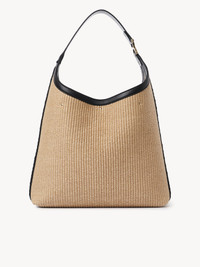 The Maison's iconic Marcie line is expanded with this roomy hobo bag, matching clean lines with a soft and slouchy silhouette. Crafted from a textural interplay of raffia and calfskin, the day bag features the line's signature metallic piece on the leather handle. Subtle gold-toned studs and dangling tassels play into Marcie's distinctive aesthetic, while the roomy interior is completed with a zippered pocket. Wear this hobo bag casually on the shoulder. All about Marcie... The Maison’s Marcie bag line blends a feminine aesthetic with a 70s folk spirit. Iconic hardware and dangling tassels elevate the equestrian spirit with signature details. PRODUCT DETAILS Hobo bag in raffia & calfskin Main material: 52% Cotton, 48% Polyamide Secondary material: Calfskin Handle: Calfskin Inner pocket: Suede calfskin Main lining: Linen Carry: Shoulder - Tassel closure - 1 main compartment - 1 inside zippered pocket Comes with a dust bag - Width: 14.2" (36 cm) - Height: 11.4" (29 cm) - Depth: 3.9" (10 cm) - Handle drop: 11" (28 cm) This purse is made from a woven fabrication adapted to meet leather goods requirements. A water-repellent treatment was applied to the fabric, but rain exposure should be avoided. Avoid rubbing this material against color-contrasting materials and shield it from humidity, light, heat, liquids and greasy substances. Follow all care instructions on the insert. Color: Hot Sand Item code: CHC24US630N1024P