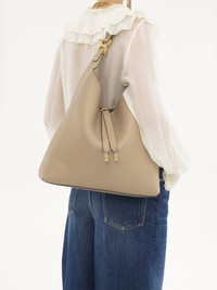 This Marcie hobo bag has a slouchy, minimalist silhouette. Crafted from grained calfskin, it features a contrasting studded handle embellished with the line's iconic gold-tone metallic piece. Signature leather tassels secure its suede calfskin interior. Wear this leather bag on the shoulder. PRODUCT DETAILS Hobo bag in grained calfskin Main material: Calfskin Main lining: Calfskin Handle: Calfskin Carry: Shoulder - Tassel closure - 1 main compartment - 1 inside zipped pocket Comes with a dust bag - Width: 14.2" (36 cm) - Height: 11.4" (29 cm) - Depth: 3.9" (10 cm) - Handle drop: 11" (28 cm) This handbag is made from semi-aniline leather. The half-transparent finish imparts a robust nature to the product while preserving its natural character. Follow all care instructions on the insert. To make this product, Chloe worked with Leather Working Group (LWG) certified leather manufacturers. LWG certifies tanneries based on their water and energy usage, management of chemicals, solid waste, and wastewater. Color: Boyish Brown Item code: CHC24SS630I3120E