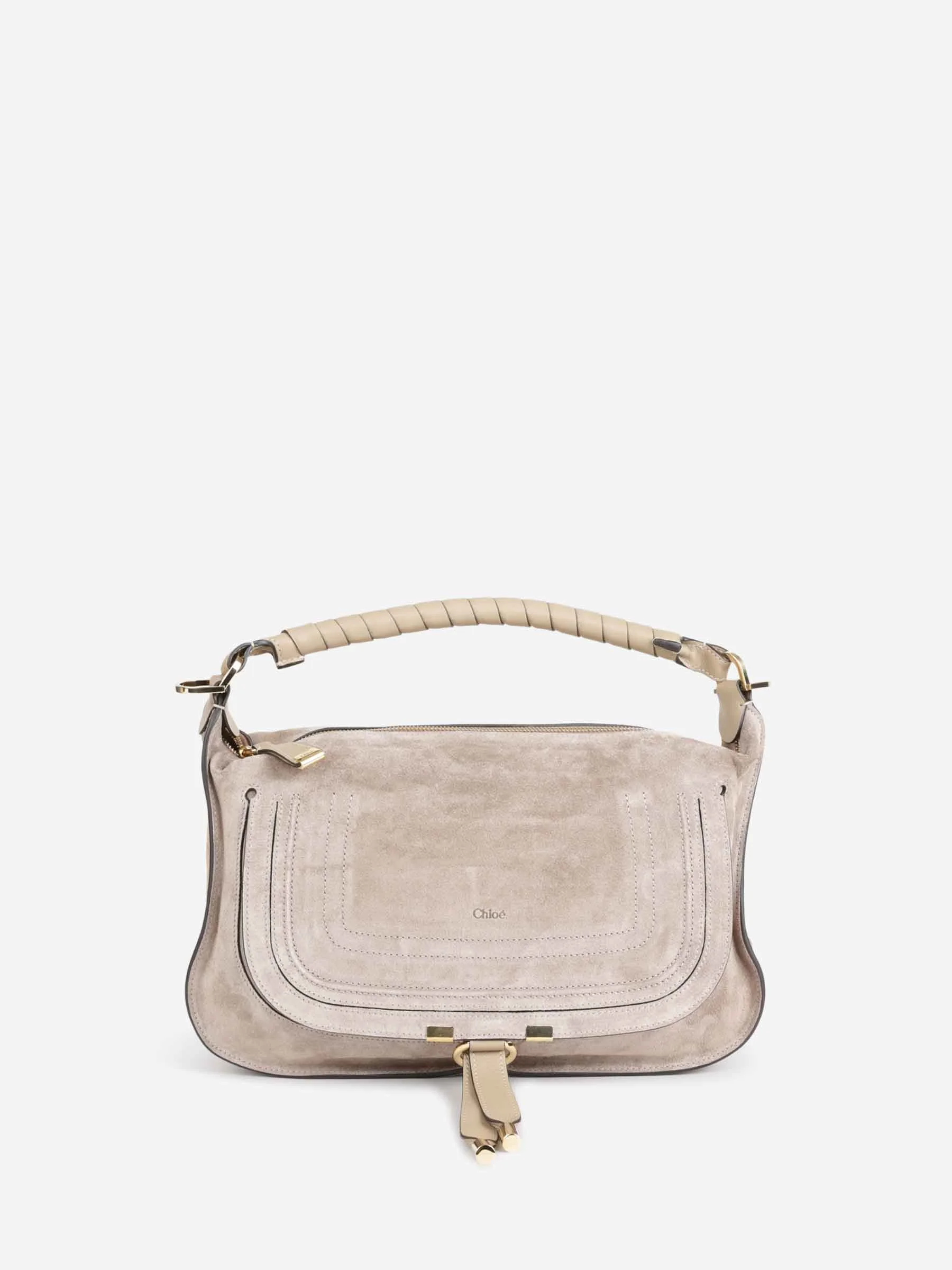 SKU: 814-000065 02 BRAND ID: CH26SS882P37 Bag By Chloe • Shoulder Bag • Small Size • Suede leather • Main compartment with zip closure • Double top handles for hand and shoulder carrying • Front pocket concealed by the flap • Dimensions: 34 x 20 x 8.5 cm • Built-in adjustable strap • Composition: 100% Calfskin • Made in: France