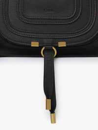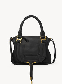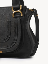 A more compact version of the iconic Marcie handbag, this small purse is crafted from grained calfskin. Clean lines and a contoured design enhance the slouchy silhouette, while hand-wrapped leather handles add crafty detail. The X-shaped buckles lend a refined finish. Double handles and a long, removable shoulder strap make this small double carry bag a truly versatile accessory. All about Marcie... The Maison’s Marcie bag line blends a feminine aesthetic with a 70s folk spirit. Decorative saddle stitches create equestrian appeal, while the glint of brass hardware and the dangling tassel add a feminine touch. PRODUCT DETAILS Small double carry bag in grained calfskin Carry: long shoulder, cross-body & hand - Roomy compartment - Zippered closure - Front slip pocket hidden by the flap - 1 internal zippered pocket - Removable leather strap attached with hooks - Linen lining Comes with a dust bag - Width: 11.8” (30 cm) - Height: 9" (23 cm) - Depth: 3.5" (9 cm) - Wide strap length: 20.1" (51 cm) This small double carry bag is made from semi-aniline leather. The half-transparent finish imparts a robust nature to the product while preserving its natural character. Respect care instructions on the leaflet. To make this product, Chloe worked with Leather Working Group (LWG) certified leather manufacturers. LWG certifies tanneries based on their water and energy usage, management of chemicals, solid waste, and wastewater. Color: Black Item code: CHC22AS628I31001