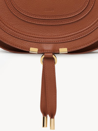 A roomy and practical day bag, this Marcie medium saddle bag is created from grained calfskin. Clean lines and a distinctive curved design enhance the feminine silhouette, while adjustable straps allow for casual shoulder or cross-body styling. All about Marcie... The Maison’s Marcie bag line blends a feminine aesthetic with a 70s folk spirit. Decorative saddle stitches create equestrian appeal, while the glint of brass hardware and the dangling tassel add a feminine touch. PRODUCT DETAILS Medium saddle bag in grained calfskin Carry: long shoulder & cross-body - 1 Roomy compartment - 1 Front slip pocket - 1 Internal flat pocket - Adjustable leather strap - Antique brass finishing - Cotton lining Comes with a dust bag - Width: 13" (33 cm) - Height: 9" (23 cm) - Depth: 2.4" (6 cm) - Min. strap drop: 15" (38 cm) - Max. strap drop: 18.9" (48 cm) This shoulder bag is made from semi-aniline leather. The half-transparent finish imparts a robust nature to the product while preserving its natural character. Respect care instructions on the leaflet. By purchasing this product, you are supporting sustainable leather manufacturing through the Leather Working Group. Color: Tan Item code: CHC22AS605I3125M