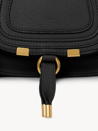 A playful, scaled-down version of the iconic Marcie handbag, this mini double carry bag is crafted from grained calfskin. Clean lines and a contoured design enhance the slouchy silhouette, while hand-wrapped leather handles add crafty detail. The metallic buckles lend a refined finish. Double handles and a long, removable shoulder strap make this mini bag a truly versatile accessory. All about Marcie... The Maison’s Marcie bag line blends a feminine aesthetic with a 70s folk spirit. Decorative saddle stitches create equestrian appeal, while the glint of brass hardware and the dangling tassel add a feminine touch. PRODUCT DETAILS Mini double carry bag in grained calfskin Carry: shoulder, cross-body & hand - Removable & adjustable strap - 1 main compartment - 1 internal flap pocket - Linen lining Comes with a dust bag - Width: 8.3" (21 cm) - Height: 6.3” (16 cm) - Depth: 3.1" (8 cm) - Handle drop: 2.8" (7 cm) - Min. strap drop: 19.7" (50 cm) - Max. strap drop: 21.7" (55 cm) This mini bag is made from semi-aniline leather. The half-transparent finish imparts a robust nature to the product while preserving its natural character. Respect care instructions on the leaflet. To make this product, Chloé worked with Leather Working Group (LWG) certified leather manufacturers. LWG certifies tanneries based on their water and energy usage, management of chemicals, solid waste, and wastewater. Color: Black Item code: CHC23SS595I31001