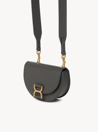 The Maison's iconic Marcie line is updated with this mini flap bag, crafted from Chloé's smooth calfskin. The curved shape is matched with a clean top line for a sophisticated silhouette. A distinctive metallic piece details the flap, echoing a signature feature of the 70s-inspired Marcie bag. The long strap is removable and allows for shoulder and cross-body styling. All about Marcie... The Maison’s Marcie leather goods line blends a feminine aesthetic with a 70s folk spirit. Decorative saddle stitches create equestrian appeal. PRODUCT DETAILS Mini flap bag in smooth calfskin Main lining: Lambskin Carry: long shoulder & cross-body - Snap button closure - 1 main compartment - 1 flat pocket inside - Fits a cell phone - Removable strap Comes with a dust bag - Width: 7.5" (19 cm) - Height: 5.1" (13 cm) - Strap drop: 16.1" (41 cm) excluding hooks This flap bag is made from semi-aniline leather. The half-transparent finish imparts a robust nature to the product while preserving its natural character. Respect care instructions on the leaflet. Color: Elephant Grey Item code: CHC23AP847K82066