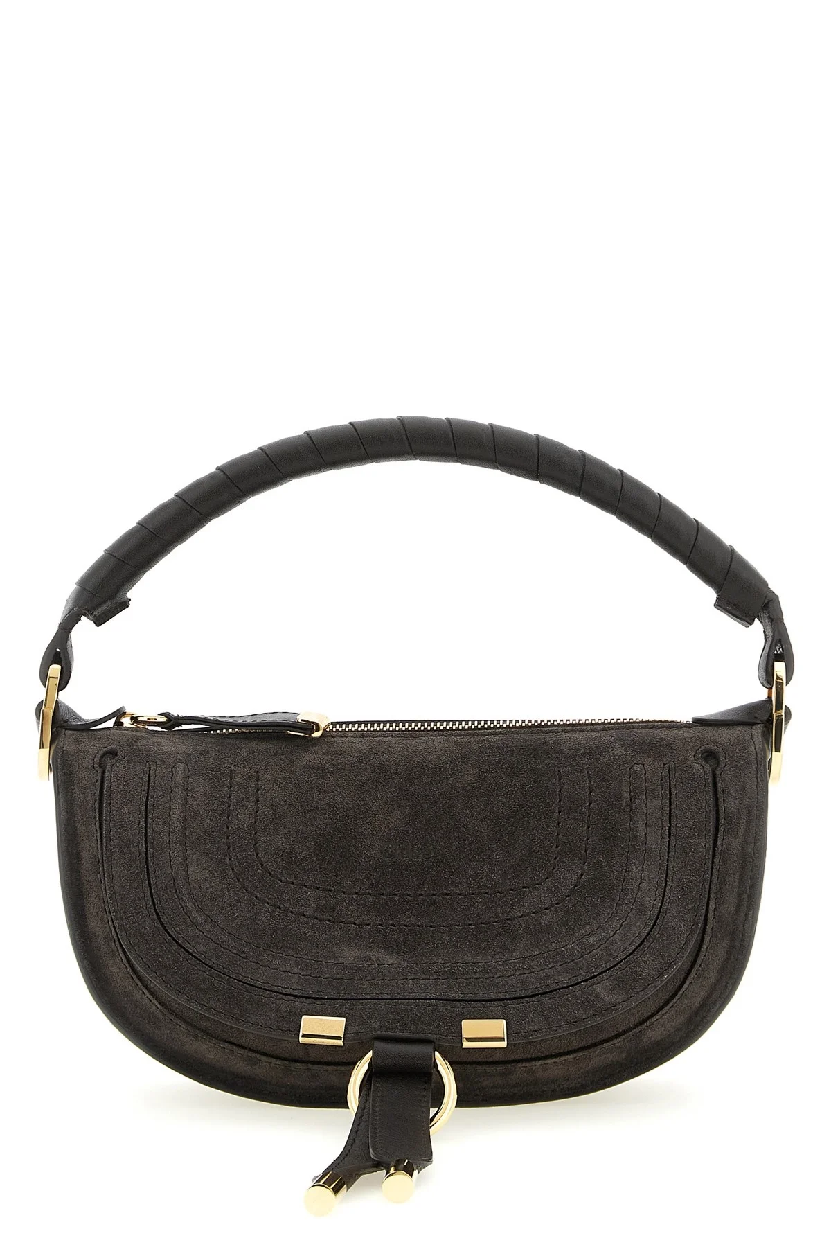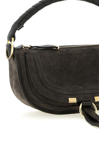 cod. CH26SP927P3724X 'Marcie' mini suede shoulder bag with saddle stitching, front pocket with flap closure with tassels, fixed hand-wound handle, top zip closure, adjustable and removable shoulder strap. SUSTAINABLE: To make this product, Chloe worked with tanneries with Leather Working Group (LWG) certification, which is based on water and energy consumption and chemical, solid waste and slurry management policy. Color: Brown Size & Fit: W 25 x H 15 x D 7 cm Composition: 100% calfskin leather (Bos Taurus) Made in: Italy PROMO CODE NOT APPLICABLE