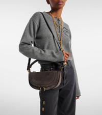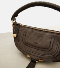 Renowned for its free-spirited aesthetic, Chloe's designs are characterized by romance with a Parisian flair. The Marcie Mini shoulder bag is crafted from supple suede and boasts saddle stitching, gold-toned hardware, and dangling front tassels. Product Details - Material: leather (suede) - Lining: leather - Made in Italy - Color: brown - Designer color name: Kohl Brown - Closure: zipped top - Top handle, Detachable, adjustable shoulder strap - Includes: dust bag - Item number: P01105821 Size & Fit - Height 14cm-5.5" - Max. width 25cm-10" - Depth 5,5cm-2" - Length of handle 38cm-15" - Adjustable shoulder strap - Min. length shoulder strap 96cm-38" - Max. length shoulder strap 122cm-48"