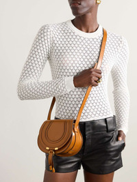EDITORS'NOTES Chloé's 'Marcie' bag features so many of the label's hallmarks, from the saddle silhouette to the bohemian tassels. This mini version is made from textured-leather with just enough space inside for your wallet, cell phone and sunglasses, and has a tab-fastening front flap so you can access them easily. It’s finished with signature equestrian-style stitching and an embossed logo. SIZE & FIT This item’s measurements are: - Min. Strap Length: 110cm / 43.3in - Depth: 10cm / 3.9in - Max. Strap Length: 130cm / 51.2in - Height: 17cm / 6.7in - Width: 19cm / 7.5in DETAILS & CARE - Brown textured-leather (Calf) - Adjustable shoulder strap - Internal slip pocket, external slip pocket - Leather lining - Tab-fastening front flap - Comes with dust bag - Weighs approximately 1.3lbs/ 0.6kg