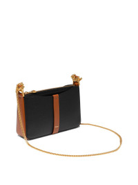 The Maison's iconic Marcie line is updated with this pouch on chain, crafted from bicolor grained and shiny calfskin for a graphic allure. Embellished with a gold-toned Chloe logo, a vertical leather strip down the front and back enhances the clean, modern lines. The elegant accessory features a zippered main compartment and two flat pockets. Signature metallic pieces at the sides echo the 70s-inspired Marcie bag. The knotted chain strap lends a refined finish and allows for shoulder and cross-body wear. All about Marcie... The Maison’s Marcie bag line blends a feminine aesthetic with a 70s folk spirit. An equestrian allure is elevated with gold-toned hardware for a feminine look. PRODUCT DETAILS Pouch on chain in grained & shiny calfskin Main material: Calfskin Secondary material: Calfskin Main lining: Lambskin Carry: Shoulder & cross-body - Zippered closure - 1 main compartment - 1 front flat pocket - 1 inside flat pocket Comes with a dust bag - Width: 8.3" (21 cm) - Height: 5" (12.7 cm) - Depth: 1.6" (4 cm) - Strap drop: 20.1" (51 cm) This pouch is made from semi-aniline leather. The half-transparent finish imparts a robust nature to the product while preserving its natural character. Respect care instructions on the leaflet. To make this product, Chloe worked with Leather Working Group (LWG) certified leather manufacturers. LWG certifies tanneries based on their water and energy usage, management of chemicals, solid waste, and wastewater. Color: Black Item code: CHC23WP849L52001