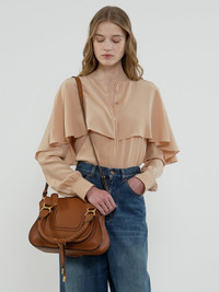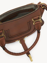 A more compact version of the iconic Marcie handbag, this small purse is crafted from grained calfskin. Clean lines and a contoured design enhance the slouchy silhouette, while hand-wrapped leather handles add crafty detail. The X-shaped buckles lend a refined finish. Double handles and a long, removable shoulder strap make this small double carry bag a truly versatile accessory. All about Marcie... The Maison’s Marcie bag line blends a feminine aesthetic with a 70s folk spirit. Decorative saddle stitches create equestrian appeal, while the glint of brass hardware and the dangling tassel add a feminine touch. PRODUCT DETAILS Small double carry bag in grained calfskin Carry: long shoulder, cross-body & hand - Roomy compartment - Zippered closure - Front slip pocket hidden by the flap - 1 internal zippered pocket - Removable leather strap attached with hooks - Linen lining Comes with a dust bag - Width: 11.8” (30 cm) - Height: 9" (23 cm) - Depth: 3.5" (9 cm) - Wide strap length: 20.1" (51 cm) This small double carry bag is made from semi-aniline leather. The half-transparent finish imparts a robust nature to the product while preserving its natural character. Respect care instructions on the leaflet. To make this product, Chloe worked with Leather Working Group (LWG) certified leather manufacturers. LWG certifies tanneries based on their water and energy usage, management of chemicals, solid waste, and wastewater. Color: Tan Item code: CHC22AS628I3125M