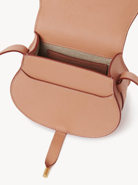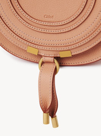 This Marcie small saddle bag is crafted from grained calfskin. The harmonious mix of a clean top-line and round silhouette is typical of the Maison's play on masculine and feminine notes. Marcie's adjustable leather strap is perfect for long shoulder and cross-body wear. All about Marcie... The Maison’s Marcie bag line blends a feminine aesthetic with a 70s folk spirit. Decorative saddle stitches create equestrian appeal, while the glint of brass hardware and the dangling tassel add a feminine touch. PRODUCT DETAILS Small saddle bag in grained calfskin Main material: Calfskin Main lining: Linen Flap lining: Calfskin Carry: Long shoulder or cross-body - 1 roomy compartment - 1 front slip pocket - Internal flat card pocket - Adjustable leather strap Comes with a dust bag - Width: 7.1" (18 cm) - Height: 6.7" (17 cm) - Depth: 3.9" (10 cm) - Min. strap drop: 19.7" (50 cm) - Max. strap drop: 23.6" (60 cm) This small bag is made from semi-aniline leather. Tanning imparts a specific character to the skin, such as hues and wrinkles, combined with a light and transparent aniline finish. Respect the care instructions on the leaflet. To make this product, Chloé worked with Leather Working Group (LWG) certified leather manufacturers. LWG certifies tanneries based on their water and energy usage, management of chemicals, solid waste, and wastewater. Color: Terracotta Pink Item code: CHC22AS680I316T5