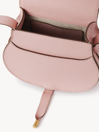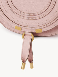 This Marcie small saddle bag is crafted from grained calfskin. The harmonious mix of a clean top-line and round silhouette is typical of the Maison's play on masculine and feminine notes. Marcie's adjustable leather strap is perfect for long shoulder and cross-body wear. All about Marcie... The Maison’s Marcie bag line blends a feminine aesthetic with a 70s folk spirit. Decorative saddle stitches create equestrian appeal, while the glint of brass hardware and the dangling tassel add a feminine touch. PRODUCT DETAILS Small saddle bag in grained calfskin Main material: Calfskin Main lining: Linen Flap lining: Calfskin Carry: long shoulder or cross-body - 1 roomy compartment - 1 front slip pocket - Internal flat card pocket - Adjustable leather strap thanks to square buckle - Antique gold finishing - Linen lining Comes with a dust bag - Width: 7.1" (18 cm) - Height: 6.7" (17 cm) - Depth: 3.9" (10 cm) - Min. strap drop: 19.7" (50 cm) - Max. strap drop: 23.6" (60 cm) This small bag is made from semi-aniline leather. Tanning imparts a specific character to the skin, such as hues and wrinkles, combined with a light and transparent aniline finish. Respect care instructions on the leaflet. Color: Blossom Pink Item code: CHC22AS680I316L8