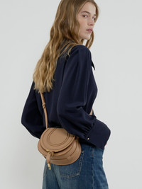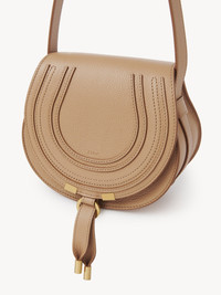 This Marcie small saddle bag is crafted from grained calfskin. The harmonious mix of a clean top-line and round silhouette is typical of the Maison's play on masculine and feminine notes. Marcie's adjustable leather strap is perfect for long shoulder and cross-body wear. All about Marcie... The Maison’s Marcie bag line blends a feminine aesthetic with a 70s folk spirit. Decorative saddle stitches create equestrian appeal, while the glint of brass hardware and the dangling tassel add a feminine touch. PRODUCT DETAILS Small saddle bag in grained calfskin Carry: long shoulder or cross-body - 1 roomy compartment - 1 front slip pocket - Internal flat card pocket - Adjustable leather strap thanks to square buckle - Antique gold finishing - Linen lining Comes with a dust bag - Width: 7.1" (18 cm) - Height: 6.7" (17 cm) - Depth: 3.9" (10 cm) - Min. strap drop: 19.7" (50 cm) - Max. strap drop: 23.6" (60 cm) This small purse is made from semi-aniline leather. Tanning imparts a specific character to the skin, such as hues and wrinkles, combined with a light and transparent aniline finish. Respect care instructions on the leaflet. Color: Light Tan Item code: CHC22AS680I3126X