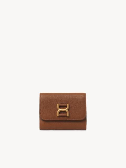 The Maison's iconic Marcie line includes this small tri-fold wallet, crafted from Chloé's signature soft, grained calfskin. Perfectly sized to hold the essentials, it has an elegant design that snaps open to reveal a compact yet organized interior. The front flap is embellished with a distinctive metallic piece linked to the 70s-inspired Marcie bag, while the subtle embossed Chloé logo adds a finishing touch. All about Marcie... The Maison’s Marcie leather goods line blends a feminine aesthetic with a 70s folk spirit. Decorative saddle stitches create equestrian appeal. PRODUCT DETAILS Small tri-fold wallet in grained calfskin Main lining: 65% Polyester, 35% Cotton - Snap button closure - 1 bill compartment - 6 card slots - 1 flat pocket Comes with a dust bag - Width: 4.3" (11 cm) - Height: 3.5" (9 cm) This long wallet is made from semi-aniline leather. Tanning imparts a specific character to the skin, such as hues and wrinkles, combined with a light and transparent aniline finish. Respect care instructions on the leaflet. To make this product, Chloé worked with Leather Working Group (LWG) certified leather manufacturers. LWG certifies tanneries based on their water and energy usage, management of chemicals, solid waste, and wastewater. Color: Softy Yellow Item code: CHC23AP099I31752