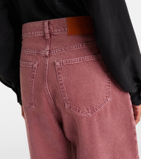 Renowned for its free-spirited aesthetic, Chloe's designs are characterized by romance with a Parisian flair. These mid-rise jeans boast a straight-leg, relaxed-fit silhouette with a logo-detailed metal plaque on the pocket. Product Details - Material: 100% cotton - Care instructions: machine wash at 30 degrees - Made in Italy - Color: pink - Designer color name: Fallow Pink - Details: 100% calf leather - Contains non-textile parts of animal origin - Closure: concealed button placket - Pockets: five pockets - Belt loops - Item number: P01130765 Size & Fit - True to size - Non-stretchy fabric - Straight leg - Mid-rise - The model seen in the picture is 178cm-5'10" and wearing a size 26