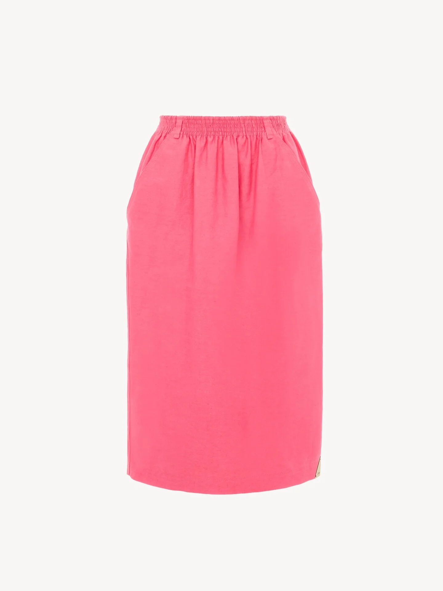 DESCRIPTION Midi pencil skirt in light cotton-mix gabardine, with an elastic waistband and side pockets. PRODUCT DETAILS Midi pencil skirt outer shell: 61% Cotton, 39% Linen Pocket lining: 100% Cotton Fit: straight - The model is 5'10" (178 cm) and wears a prototype in size 36 - Straight midi skirt - Elastic waistband - Side pockets Color: Pink Fizz Item code: CH26SJU260436V7 CARE INSTRUCTIONS To preserve the integrity of your garment, please refrain from washing, entrusting its care to professional cleaning services for optimal maintenance. This garment cannot withstand any bleaching agent. To maintain its shape, gently iron this garment at a maximum sole plate temperature of 110°C, taking care to avoid any harsh pressure while ironing. Entrust this garment to a specialist for mild cleaning with tetrachloroethylene and solvent F, ensuring its delicate nature is maintained with the most care. To best preserve its form and texture, please do not tumble dry this garment. To maintain its delicate nature, do not wet clean this garment. TRACEABILITY Better traceability is central to improving our materials as well as social and environmental practices. Dyeing: Italy Finishing: Italy Weaving: Italy Manufacturing : Italy