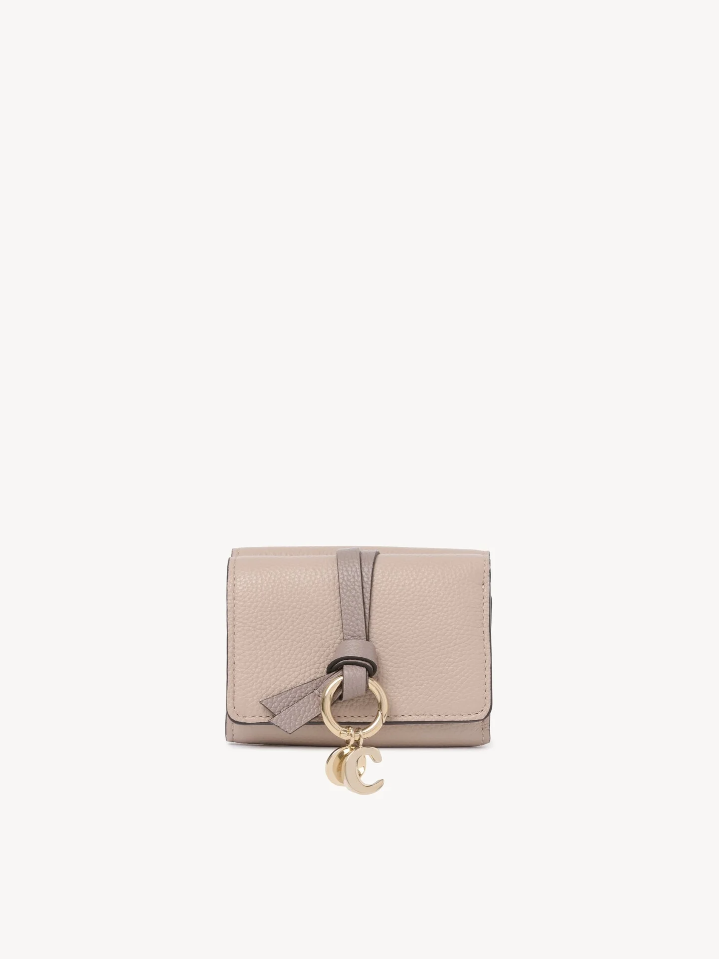 DESCRIPTION The Maison's iconic Alphabet line includes this mini tri-fold wallet in grained and shiny calfskin. Sized to hold the essentials, it features a single bill compartment and a coin compartment with flap. This compact wallet will slip easily into your clutch or a small bag. PRODUCT DETAILS Mini tri-fold wallet in grained & shiny calfskin Main lining: Lambskin Flap lining: Calfskin Inside trim: 65% Polyester, 35% Cotton - 1 back pocket with flap - 1 bill compartment - 3 card slots - Snap button closure Comes with a dust bag - Width: 3.7" (9.5 cm) - Height: 2.8" (7 cm) - Depth: 1.2" (3 cm) To make this product, Chloe worked with Leather Working Group (LWG) certified leather manufacturers. LWG certifies tanneries based on their water and energy usage, management of chemicals, solid waste, and wastewater. Color: Woodsmoke Item code: CH26SP719R1125Y CARE INSTRUCTIONS In order to protect this article, we recommend that you: avoid rubbing against abrasive materials shield it from humidity, light and heat avoid contact with liquids and greasy substances (makeup, cream) store your product carefully in its dustcover when not in use avoid rubbing against color-contrasting clothes or materials. To remove a water stain, gently soak up liquid by dabbing it with a white cloth should a scratch occur on the leather, you can gently massage it with the same type of cloth for all other issues, please contact the Chloe after-sales service or a specialist.