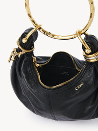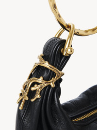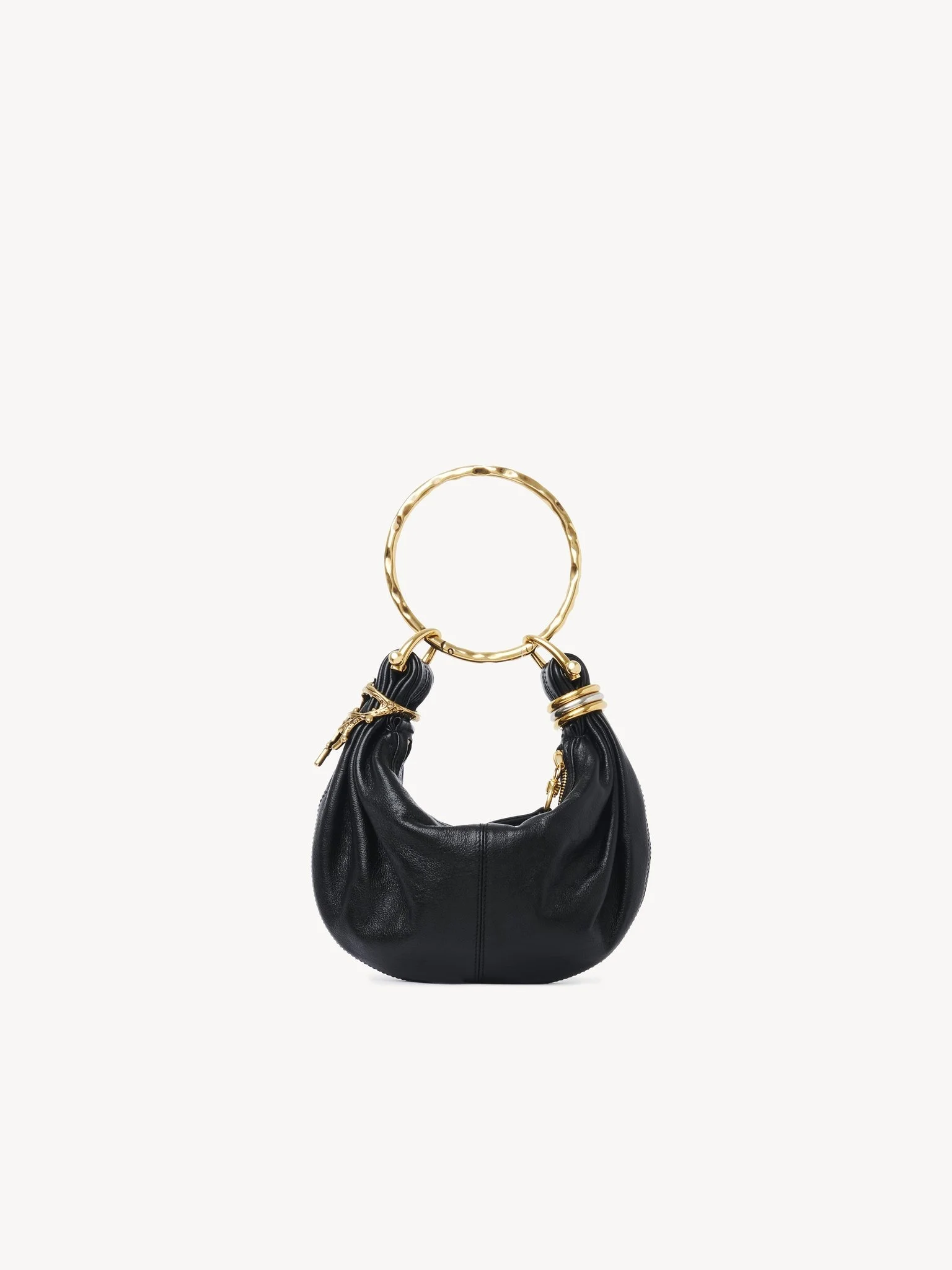 Inspired by the Maison's Archives, this mini Bracelet Hobo bag is crafted from grained buffalo leather. The supple, rounded shape is elevated by a hammered bracelet handle, a golden coral charm and stacked bi-color rings. Carry this mini Bracelet bag in the hand, on the shoulder or crossbody. PRODUCT DETAILS Mini Bracelet Hobo bag in grained buffalo leather Main material: Buffalo leather Main lining: Calfskin Carry: Hand, shoulder & crossbody - 1 main compartment - 1 inside flat pocket - 1 removable ring handle - 1 adjustable & removable strap - Zip closure Comes with a dust bag - Width: 8.3" (21 cm) - Height: 5.5" (14 cm) - Depth: 2.4" (6 cm) - Handle drop: 8.7" (22 cm) - Min. strap drop: 16.5" (42 cm) - Max. strap drop: 19.7" (50 cm) This hobo bag is made from semi-aniline leather. Tanning imparts a specific character to the skin, such as hues and wrinkles, combined with a light and transparent aniline finish. Respect the care instructions on the leaflet. To make this product, Chloe worked with Leather Working Group (LWG) certified leather manufacturers. LWG certifies tanneries based on their water and energy usage, management of chemicals, solid waste, and wastewater. Color: Black Item code: CH25US623P58001
