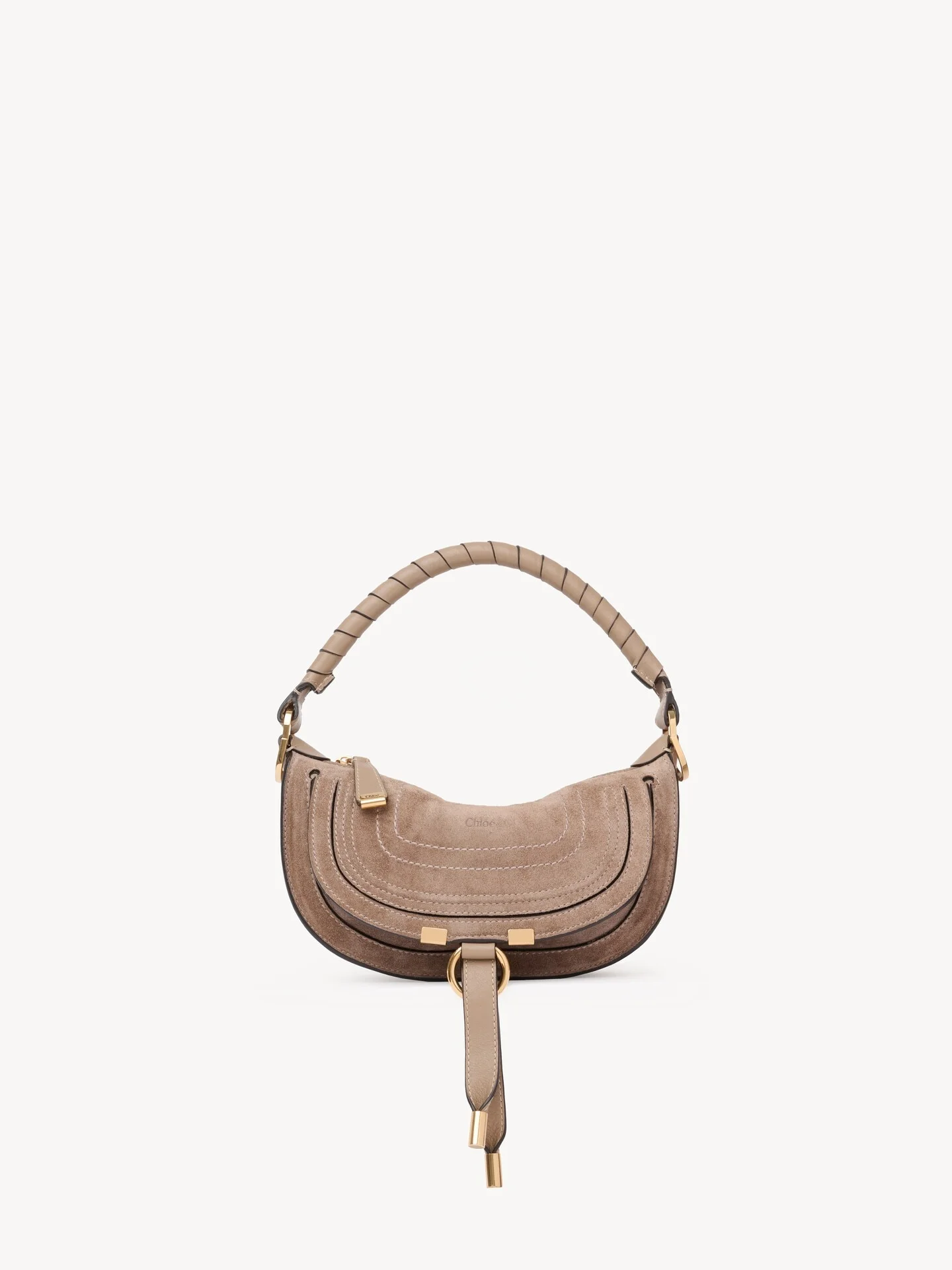 DESCRIPTION Crafted from suede calfskin, this mini Marcie shoulder bag reinterprets the line's iconic day bag with a slouchier silhouette. Saddle stitching, a single hand-wrapped handle and gold-tone hardware finish the updated design. The line's dangling leather tassels secure the flap. Carry this leather bag in the hand or on the shoulder, or crossbody with the adjustable leather strap. PRODUCT DETAILS Mini Marcie shoulder bag in suede calfskin Main material: Calfskin Secondary material: Calfskin Main lining: 68% Linen, 32% Cotton Carry: Hand, shoulder & crossbody - 1 main compartment (fits a cell phone) - 1 inside flat pocket - 1 front flat pocket - 1 adjustable & removable leather strap - Zip closure Comes with a dust bag - Width: 9.8" (25 cm) - Height: 5.9" (15 cm) - Depth: 2.8" (7 cm) - Handle drop: 5.9" (15 cm) - Min. strap drop: 17.7" (45 cm) - Max. strap drop: 23.2" (59 cm) To make this product, Chloe worked with Leather Working Group (LWG) certified leather manufacturers. LWG certifies tanneries based on their water and energy usage, management of chemicals, solid waste, and wastewater. Color: Boyish Brown Item code: CH26SP927P3720E CARE INSTRUCTIONS In order to protect this article, we recommend that you: avoid rubbing against abrasive materials shield it from humidity, light and heat avoid contact with liquids and greasy substances (makeup, cream) store your product carefully in its dustcover when not in use avoid rubbing against color-contrasting clothes or materials. To remove a water stain, gently soak up liquid by dabbing it with a white cloth should a scratch occur on the leather, you can gently massage it with the same type of cloth for all other issues, please contact the Chloe after-sales service or a specialist. TRACEABILITY Better traceability is central to improving our materials as well as social and environmental practices. Dyeing: Italy Finishing: Italy Tanning: Italy