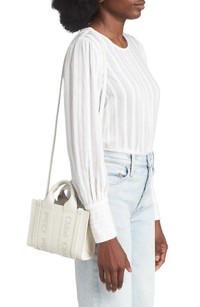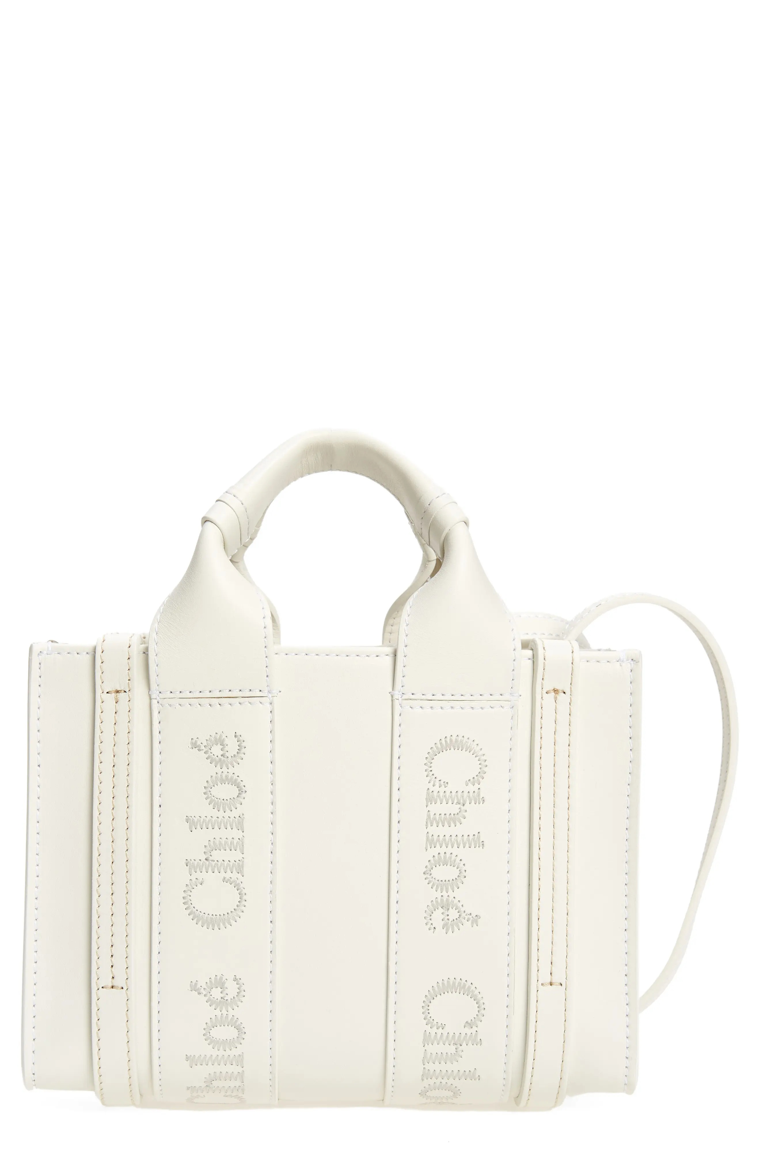 Chloé's classic logo is tonally embroidered on the topstitched straps of this petite leather tote. The structured style comes with a crossbody strap for the option of hands-free carry. Open top Top carry handles; removable, adjustable crossbody strap Interior wall pocket Structured silhouette with flat base for stability Leather Made in Italy Designer Handbags This brand has B Corp certification, representing business practices with emphasis on social and environmental performance, accountability and transparency This brand meets Nordstrom Responsible Brands criteria: brand adheres to responsible social and environmental practices