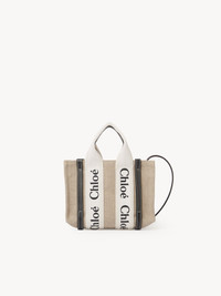 Crafted from linen canvas detailed with shiny calfskin strips, this mini Woody tote bag is a compact day-to-evening bag with a strong summer attitude. The main compartment fits a mobile phone. The bag's sharp, modern lines are emphasized by the contrasting vertical leather strips and the signature Chloé logo. Carry this mini bag in hand or cross-body with the long strap. All about Woody... The Woody line is characterized by the signature Chloé logo carried over from the Maison's iconic mules. It showcases a modern, minimalist silhouette ranging from nano to large sizes. PRODUCT DETAILS Tote bag in linen canvas & shiny calfskin with Woody ribbon Carry: hand, long shoulder & cross-body - 1 strap & 1 top handle - 1 main compartment (fits a mobile phone) Comes with a dust bag - Width: 7.9" (20 cm) - Height: 5.5" (14 cm) - Depth: 1.6" (4 cm) - Handle drop: 3.1" (8 cm) - Strap drop: 21.7" (55 cm) This mini tote bag is made from linen. In an effort to limit its environmental impact and have a positive influence on society, Chloé is accelerating its transition to more responsible sourcing. This progress is most notably reflected in the introduction of linen — an inherently lower-impact material—to the collection. Respect care instructions on the leaflet. To make this product, Chloé worked with Leather Working Group (LWG) certified leather manufacturers. LWG certifies tanneries based on their water and energy usage, management of chemicals, solid waste, and wastewater. Color: White & Blue Item code: CHC22AP237I2691J