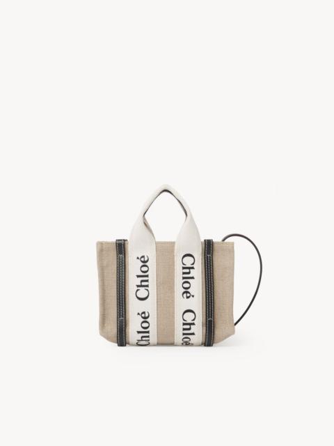 Crafted from linen canvas detailed with shiny calfskin strips, this mini Woody tote bag is a compact accessory with a strong summer attitude. The main compartment fits a mobile phone. The bag's sharp, modern lines are emphasized by the contrasting vertical leather strips and the signature Chloé logo. Carry this mini bag in hand or cross-body with the long strap. All about Woody... The Woody line is characterized by the signature Chloé logo carried over from the Maison's iconic mules. It showcases a modern, minimalist silhouette ranging from nano to large sizes. PRODUCT DETAILS Tote bag in linen canvas & shiny calfskin with Chloé logo webbing Main lining: Linen Carry: hand, long shoulder & cross-body - 1 strap & 1 top handle - 1 main compartment (fits a mobile phone) Comes with a dust bag - Width: 7.9" (20 cm) - Height: 5.5" (14 cm) - Depth: 1.6" (4 cm) - Handle drop: 3.1" (7.9 cm) - Strap drop: 21.7" (55 cm) This mini tote bag is made from linen. In an effort to limit its environmental impact and have a positive influence on society, Chloé is accelerating its transition to more responsible sourcing. This progress is most notably reflected in the introduction of linen – an inherently low-impact material – to the collection. Respect care instructions on the leaflet. To make this product, Chloé worked with Leather Working Group (LWG) certified leather manufacturers. LWG certifies tanneries based on their water and energy usage, management of chemicals, solid waste, and wastewater. Color: Cement Pink Item code: CHC22AP237I266J5