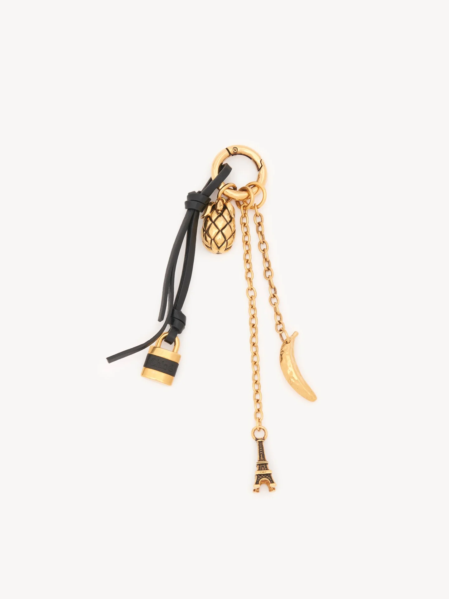 DESCRIPTION Crafted from brass and calfskin, this Miniatures bag charm features dangling chains and multiple pendants inspired by the Maison's heritage. PRODUCT DETAILS Miniatures bag charm in brass & calfskin Main material: 50% Brass, 50% Zamak Secondary material: Calfskin - One size only - Brass ring - Width: 4.3" (11 cm) - Height: 3.5" (9 cm) - Depth: 1" (2.5 cm) Color: Gold Item code: CH25UK161P679DA CARE INSTRUCTIONS To ensure this item's quality and longevity, wear it regularly and avoid exposure to direct sunlight and heat. Avoid impact and contact with water, perfume or chlorine. Store in your pouch and box when not in use.