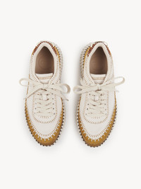 Rooted in the Maison's commitment to sustainability, these eco-designed Nama sneakers are crafted from smooth and suede cowhide and a mix of lower-impact materials. Set on a chunky, ridged sole, the ultra-comfortable, lightweight structure features a hand-stitched mesh upper, finished with the signature Chloe logo on the back and tongue. PRODUCT DETAILS Sneaker heel height: 2" (5 cm) Heel-to-toe drop: 0.8" (2 cm) Upper 1: cowhide Upper 2: suede cowhide Upper 3: polyester Upper 4: polyester Inner sole: ethylene vinyl acetate Main lining: 95% polyester, 5% elastane Secondary lining: calfskin Sole: 50% ethylene vinyl acetate, 50% rubber Heel: 50% acrylonitrile butadiene styrene, 50% sheepskin Fit true to size, European sizing - Lace-up To make this product, Chloe worked with Leather Working Group (LWG) certified leather manufacturers. LWG certifies tanneries based on their water and energy usage, management of chemicals, solid waste, and wastewater. Color: Autumnal Brown Item code: CHC24A00RMS211