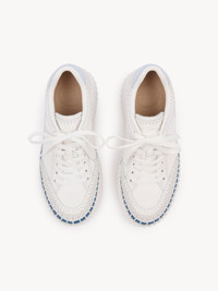 DESCRIPTION Crafted from smooth and suede cowhide, these Nama wedge sneakers are set on an iconic, lightweight and ultra-comfortable recycled sole. They are finished with immaculate blanket stitching which takes 4.5 hours to complete by hand. An embroidered Chloe logo signs the tongue while a debossed logo finishes the back. PRODUCT DETAILS Wedge sneaker heel height: 3.1" (8 cm) Heel-to-toe drop: 1.8" (4.5 cm) Upper 1: smooth cowhide Upper 2: suede cowhide Inner sole: EVA Main lining: 95% polyester, 5% elastane Sole: 50% EVA, 50% rubber Fit true to size, European sizing - Lace-up To make this product, Chloe worked with Leather Working Group (LWG) certified leather manufacturers. LWG certifies tanneries based on their water and energy usage, management of chemicals, solid waste, and wastewater. Color: Denim Blue Item code: CHC24U02IBD49X CARE INSTRUCTIONS Simple but frequent maintenance is necessary in order to keep your NAMA sneakers looking as good as new. A few simple steps are all that’s needed to take care of them.Remove the laces from your NAMA sneakers and rub them gently with a little bit of soap, rinse them off and dry them with a soft cloth.Use a soft shoe brush to remove dust and dirt from the outsole and upper.The fabric parts can be cleaned with a soft, slightly damp cloth.To maintain the velvety appearance of suede or nubuck leather, gently clean with a crepe brush. If your sneakers get wet, remove the insole and leave to dry in a well-ventilated place. You should not put your sneakers in the washing machine or use abrasive products such as bleach. Do not tumble dry your sneakers.Fill your sneakers with tissue paper to maintain the original shape, then place them in the two protective covers provided. Store them in a cool, dry place.