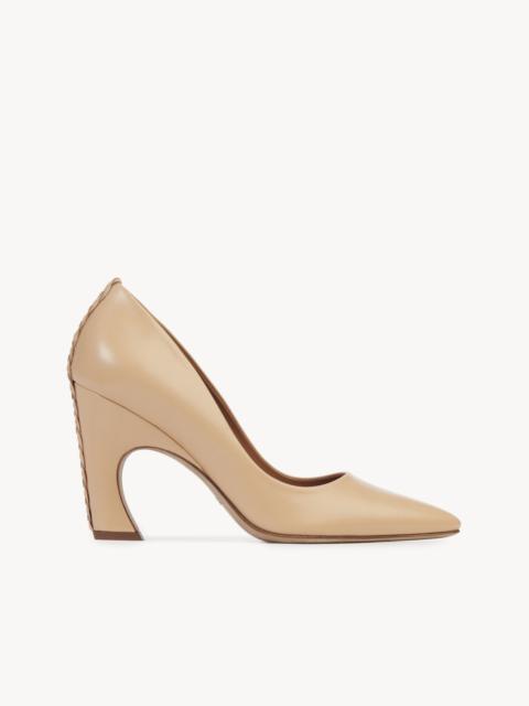 Crafted from goatskin embellished with a tonal braid along the back of the heel, this Oli pump exudes pure femininity with its elongated almond toe shape and refined sole. Easy to wear, this day-to-evening pump has a distinctive heel that forms a heart shape when placed alongside the other heel, updating the timeless silhouette with a romantic touch. The heel is covered in goatskin to match the upper, creating a refined, sophisticated aesthetic. A metallic Chloé logo signs the outsole. PRODUCT DETAILS Pumps heel height: 3.1" (8 cm) Heel-to-toe drop: 3.1" (8 cm) - Inner sole: young goatskin - Upper: goatskin - Main lining: young goatskin - Sole: cow nubuck - Heel: 95% goatskin, 5% thermoplastic polyurethane Fit true to size, European sizing - Slip-on black heel To make this product, Chloé worked with Leather Working Group (LWG) certified leather manufacturers. LWG certifies tanneries based on their water and energy usage, management of chemicals, solid waste, and wastewater. Color: Black Item code: CHC23W959GD001