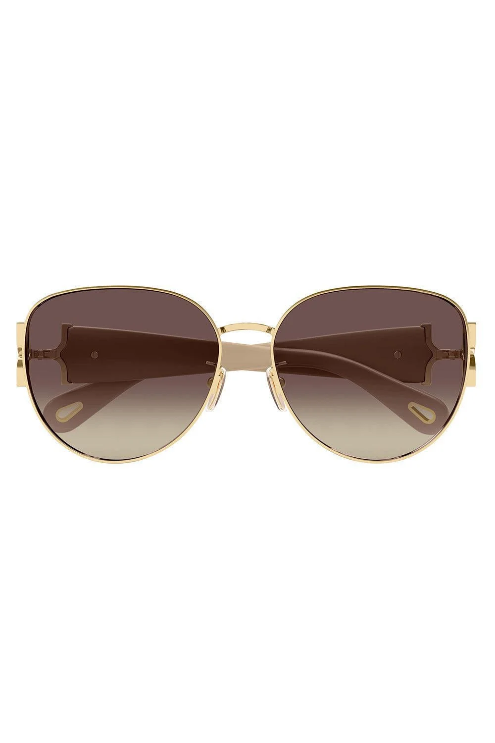 DETAILS AND INSIGHT Chloe oval aviator sunglasses in gold/ivory/brown. Metal, Acetate 54mm x 61mm x 145mm Imported Style CH0261SK-003