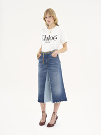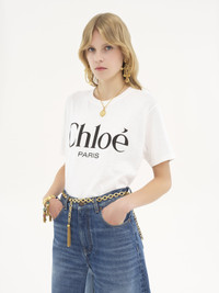 Crew-neck oversized T-shirt in light washed cotton jersey, featuring a contrast Chloe Paris logo print at the front. PRODUCT DETAILS Oversized logo T-shirt outer shell: 100% Cotton Fit: oversized - The model is 5'10" (178 cm) and wears a prototype in size 36 - Logo T-shirt - Slips on Care: gentle wash 90°F (30°C) Color: White Item code: CH25SJH20191101