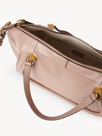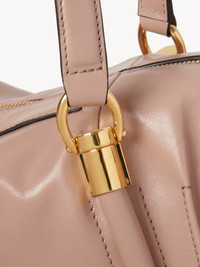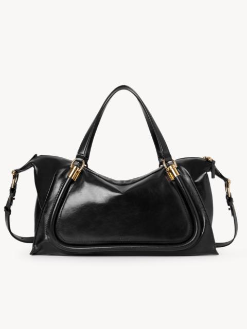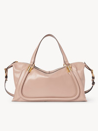 Crafted from natural shiny calfskin, the Paraty 24 shoulder bag is inspired by the Chloé archives, combining sharp lines and rounded curves with gold hardware. Paraty 24 features double handles and a strap for hand, shoulder or cross-body carry. PRODUCT DETAILS Shoulder bag in natural shiny calfskin Main material: Calfskin Main lining: 54% Cotton, 46% Linen Carry: Hand, shoulder & cross-body - 1 main compartment - 1 inside flat pocket - Double handles - 1 adjustable & removable strap - Zip closure Comes with a dust bag - Width: 16.3" (41.5 cm) - Height: 7.5" (19 cm) - Depth: 7.1" (18 cm) - Handle drop: 11" (29 cm) - Min. strap drop: 19.7" (50 cm) - Max. strap drop: 23.6” (60 cm) This handbag is made from semi-aniline leather. The half-transparent finish imparts a robust nature to the product while preserving its natural character. Follow all care instructions on the insert. To make this product, Chloé worked with Leather Working Group (LWG) certified leather manufacturers. LWG certifies tanneries based on their water and energy usage, management of chemicals, solid waste, and wastewater. Color: Deep Beige Item code: CHC24AS750N8228V
