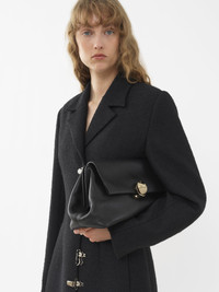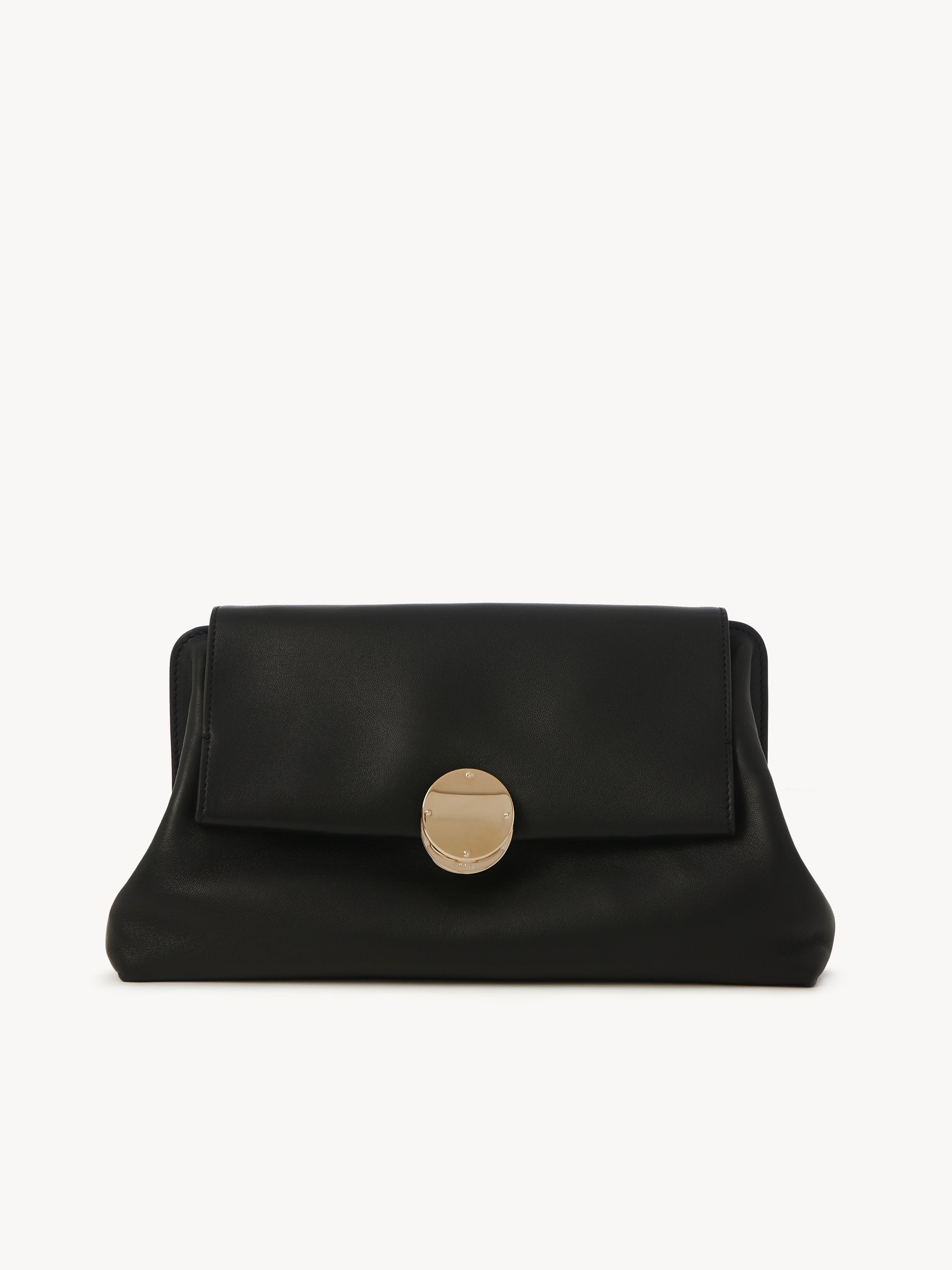 Crafted from nappa lambskin, the Penelope clutch is a roomy day-to-evening accessory with a soft silhouette. The line's signature metallic piece closes the flap, lending sophisticated detail to the slouchy yet feminine shape. A flat inside pocket rounds off the spacious main compartment. The long, adjustable strap allows for shoulder and cross-body wear in addition to hand carry. All about Penelope… In Homer's Odyssey, Penelope is a symbol of ideal femininity and loyalty. She is a free, independent woman with a strong character. Inspired by her qualities, the Penelope line matches the Chloé DNA with rounded lines, refined details and craftsmanship. Inspired by the Maison's vintage jewelry, the iconic metallic closure developed in Italy adds a signature finish. PRODUCT DETAILS Clutch in nappa lambskin Carry: hand, shoulder & cross-body - 1 spacious main compartment - 1 internal flat pocket - Long, removable & adjustable strap - Linen lining Comes with a dust bag - Width: 12.2" (31 cm) - Height: 6.1" (15.5 cm) - Depth: 5.7" (14.5 cm) - Min. strap drop: 16.1" (41 cm) - Max. strap drop: 18.1" (46 cm) This clutch is made from semi-aniline leather. The half-transparent finish imparts a robust nature to the product while preserving its natural character. Respect care instructions on the leaflet. To make this product, Chloé worked with Leather Working Group (LWG) certified leather manufacturers. LWG certifies tanneries based on their water and energy usage, management of chemicals, solid waste, and wastewater. Color: Black Item code: CHC23US554J58001