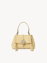 Crafted from naturally grained bull leather, this Penelope mini soft shoulder bag revisits the large bag's slouchy silhouette in a compact version with the same relaxed, feminine allure. The bag features refined details and craftsmanship rooted in the Chloé DNA, such as leather braiding, dangling tassels and contrasting hardware. A day-to-evening accessory with linen lining, Penelope has a main compartment and an internal flat pocket. The line's signature metallic piece closes the flap, echoing the hooks attaching the strap. Wear this mini bag casually on the arm, shoulder or cross-body. All about Penelope… In Homer's Odyssey, Penelope is a symbol of ideal femininity and loyalty. She is a free, independent woman with a strong character. Inspired by her qualities, the Penelope line matches the Chloé DNA with rounded lines, refined details and craftsmanship. Inspired by the Maison's vintage jewelry, the iconic metallic closure developed in Italy adds a signature finish. PRODUCT DETAILS Mini soft shoulder bag in grained bull leather with leather braids Main material: Bull leather Secondary material: Bull leather Main lining: Linen Flap lining: Bull leather Carry: Arm, shoulder & cross-body - Round metallic closure system - 1 main compartment - 1 inside flat pocket - Removable handle - Removable strap Comes with a dust bag - Width: 8.7" (22 cm) - Height: 5.5" (14 cm) - Depth: 3.5" (9 cm) - Handle drop: 4.7" (12 cm) - Strap drop: 19.1" (48.5 cm) This mini bag is made from pure aniline leather. Tanning imparts a specific character to the skin, such as hues and wrinkles, combined with a light and transparent aniline finish. Respect the care instructions on the leaflet. To make this product, Chloé worked with Leather Working Group (LWG) certified leather manufacturers. LWG certifies tanneries based on their water and energy usage, management of chemicals, solid waste, and wastewater. Color: Softy Yellow Item code: CHC23AS575K15752