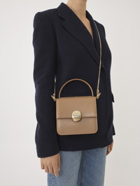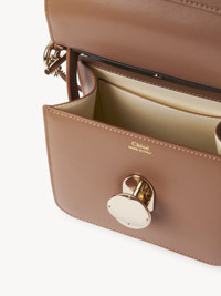 Crafted from smooth calfskin, the Penelope small top handle bag combines a straight top line with a structured silhouette for a sleek aesthetic. The line's signature metallic piece closes the flap, lending sophisticated detail. An inside flat pocket rounds off the main compartment. The long chain strap and top handle allow for multiple carry options. All about Penelope… In Homer's Odyssey, Penelope is a symbol of ideal femininity and loyalty. She is a free, independent woman with a strong character. Inspired by her qualities, the Penelope line matches the Chloé DNA with rounded lines, refined details and craftsmanship. Inspired by the Maison's vintage jewelry, the iconic metallic closure developed in Italy adds a signature finish. PRODUCT DETAILS Small top handle bag in smooth calfskin Main material: Calfskin Secondary material: Calfskin Main lining: Lambskin Flap lining: Calfskin Carry: Arm, shoulder & cross-body - 1 main compartment - 1 inside flat pocket - Top handle - Long removable chain strap Comes with a dust bag - Width: 6.7" (17 cm) - Height: 6.3" (16 cm) - Depth: 3.5" (9 cm) - Handle drop: 3.9" (10 cm) - Strap drop: 21.7" (55 cm) This small bag is made from semi-aniline leather. The half-transparent finish imparts a robust nature to the product while preserving its natural character. Respect the care instructions on the leaflet. To make this product, Chloé worked with Leather Working Group (LWG) certified leather manufacturers. LWG certifies tanneries based on their water and energy usage, management of chemicals, solid waste, and wastewater. Color: Desert Beige Item code: CHC24SS577M2924J