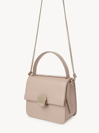 Crafted from smooth calfskin, the Penelope small top handle bag combines a straight top line with a structured silhouette for a sleek aesthetic. The line's signature metallic piece closes the flap, lending sophisticated detail. An inside flap pocket rounds off the main compartment. The long chain strap and top handle allow for multiple carry options. All about Penelope… In Homer's Odyssey, Penelope is a symbol of ideal femininity and loyalty. She is a free, independent woman with a strong character. Inspired by her qualities, the Penelope line matches the Chloé DNA with rounded lines, refined details and craftsmanship. Inspired by the Maison's vintage jewelry, the iconic metallic closure developed in Italy adds a signature finish. PRODUCT DETAILS Small top handle bag in smooth calfskin Secondary material: Calfskin Main lining: Lambskin Carry: Arm, shoulder & cross-body - 1 main compartment - 1 inside flap pocket - Top handle - Long removable chain strap Comes with a dust bag - Width: 6.7" (17 cm) - Height: 6.3" (16 cm) - Depth: 3.5" (9 cm) - Handle drop: 3.9" (10 cm) - Strap drop: 21.7" (55 cm) This small bag is made from pure aniline leather. Tanning imparts a specific character to the skin, such as hues and wrinkles, combined with a light and transparent aniline finish. Respect care instructions on the leaflet. To make this product, Chloé worked with Leather Working Group (LWG) certified leather manufacturers. LWG certifies tanneries based on their water and energy usage, management of chemicals, solid waste, and wastewater. Color: Powder Beige Item code: CHC23AS577K5326Z